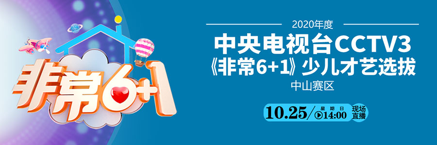 2020年度中央電視臺(tái)CCTV3《非常6+1》少兒才藝選拔中山賽區(qū)開賽,10月25日下午2點(diǎn),中山日?qǐng)?bào)全程直播,敬請(qǐng)關(guān)注