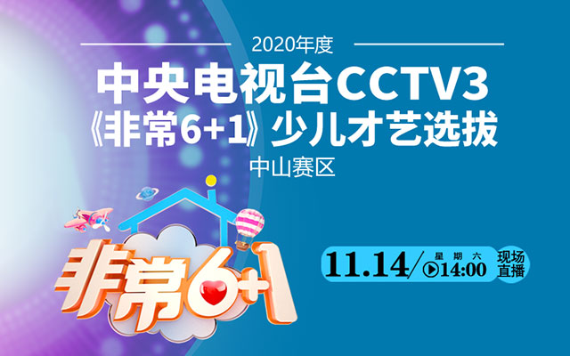2020年度中央電視臺CCTV3《非常6+1》少兒才藝選拔中山賽區(qū)將于11月14日下午2點舉行,中山日報報業(yè)集團(tuán).中山網(wǎng)全程直播,敬請關(guān)注!