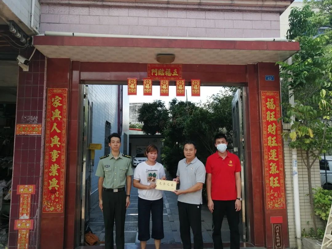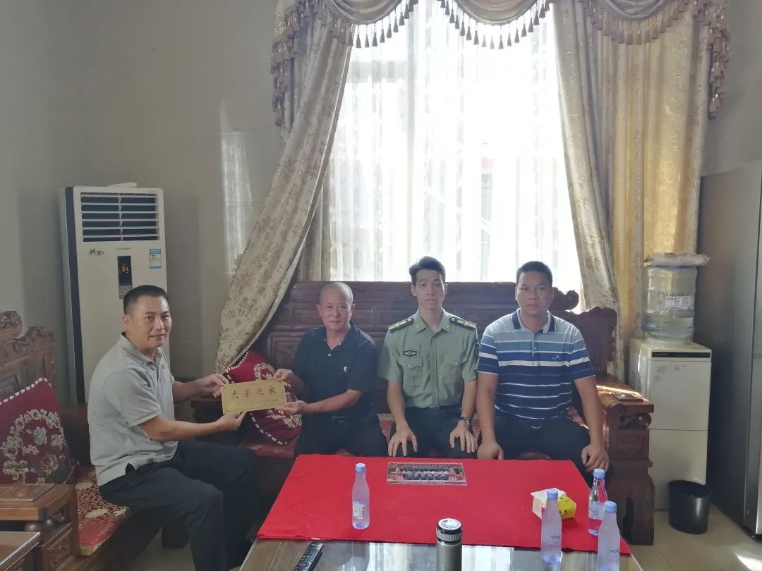 為進一步鞏固和發(fā)展軍政軍民團結(jié),弘揚新時代擁軍優(yōu)屬的優(yōu)良傳統(tǒng),推進軍人榮譽體系建設(shè),營造關(guān)愛軍人的濃厚社會氛圍,7月15日上午,阜沙鎮(zhèn)武裝部、退役軍人服務(wù)中心聯(lián)合走訪今年入伍的6名新兵家屬,為其家庭懸掛“光榮之家”門牌,送上入伍電子相冊,了解新兵在部隊的訓(xùn)練、學(xué)習(xí)和生活情況,增強軍屬家庭的榮譽感和自豪感,讓他們切實感受到黨和政府的關(guān)愛和溫暖。 在新兵周志偉家中,其父親周錦元自豪地說:“雖然非常舍不得志偉離開我們,但是送他到部隊鍛煉,為國家作貢獻,心里還是很高興的,也非常自豪。今天你們來給我家掛光榮牌、送相冊,我們?nèi)倚睦锱模浅8兄x黨和政府對我們的關(guān)心?!?/p>一人參軍,全家光榮 一塊刻著“光榮之家”的小小牌匾 對軍屬家庭來說卻是一份特殊的“禮物” 牌匾雖小