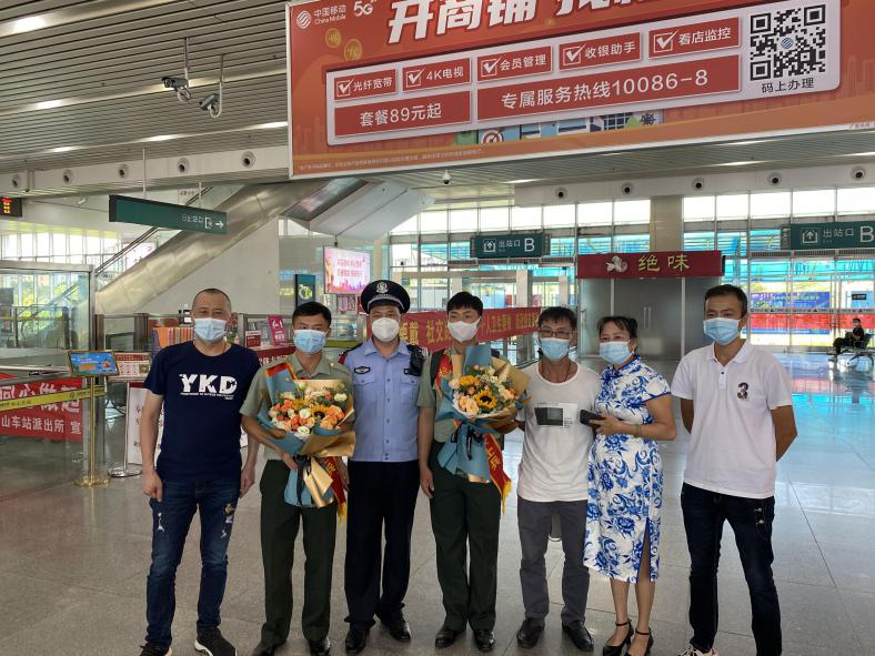 9月24日中午,沙溪鎮(zhèn)退役軍人服務(wù)中心會同云漢村委會與退役軍人家屬一同趕往中山北站,迎接光榮返鄉(xiāng)的云漢村劉德偉、劉品添兩名退役軍人。