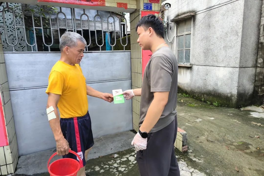 作為曾在廣西防城港部隊駐守過的 “老兵”,嚴兆雄連日來幾乎每天都和村委會工作人員一起走街串巷,排查積水容器、清理衛(wèi)生死角,手機里存著各種 “問題點位” 的照片。嚴兆雄對 “防控” 二字格外敏銳:“基孔肯雅熱、登革熱都是‘防’字當頭,就像當年駐守一樣,得盯著每一個‘漏洞’?!?說著,又發(fā)現(xiàn)一犄角旮旯藏有積水,迅速上前倒掉。曬得黝黑的臉上掛著汗珠,他笑著說,“比起當年站崗,現(xiàn)在為鄉(xiāng)親父老守健康,值得!”
