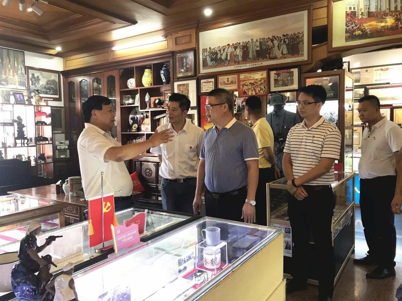 ▲黃圃鎮(zhèn)退役軍人服務(wù)中心向吳惠森贈(zèng)送錦旗 座談會(huì)結(jié)束后,與會(huì)人員參觀了吳惠森“家庭軍事博物館”,開展“老兵永遠(yuǎn)跟黨走·重溫紅色故事”主題黨日活動(dòng),感悟當(dāng)今生活來之不易,銘記歷史、勿忘國(guó)恥,引導(dǎo)廣大退役軍人增強(qiáng)聽黨話、跟黨走的行動(dòng)自覺,充分營(yíng)造軍愛民,民擁軍,軍民魚水一家親的良好社會(huì)氛圍,提升黃圃鎮(zhèn)退役軍人工作服務(wù)水平,以良好的工作成效慶祝中國(guó)共產(chǎn)黨成立100周年。