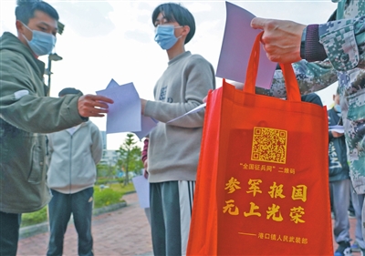 在體檢集合處,“參軍報(bào)國,無上光榮”等字眼隨處可見。