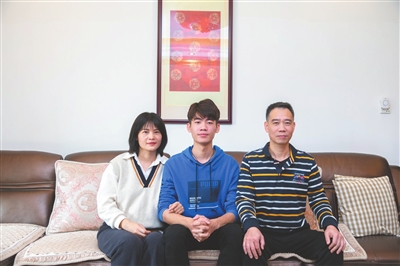 吳江浩(中)和父母。本報記者 張倩 攝