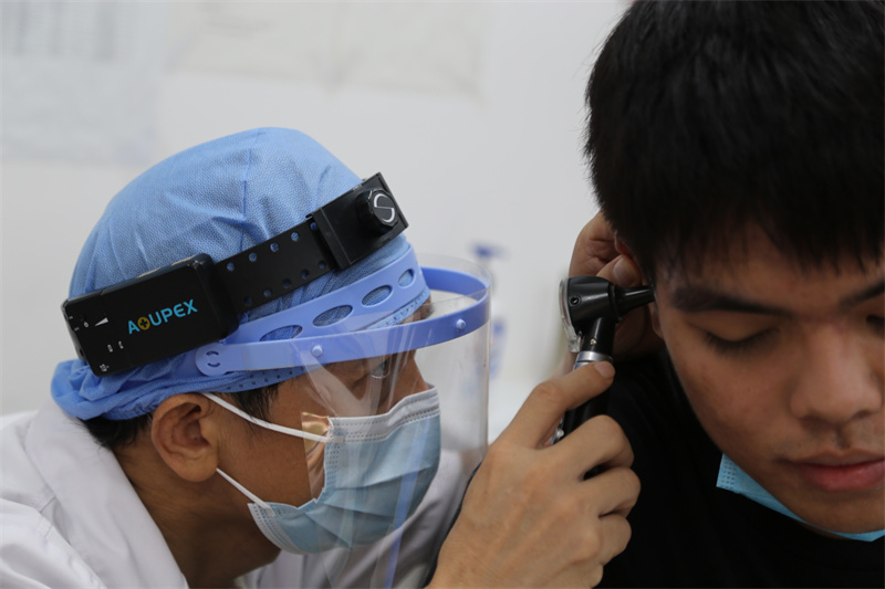 南區(qū)醫(yī)院抽調(diào)各業(yè)務(wù)科室30余名骨干組成征兵體檢隊,嚴格按照征兵體檢程序和規(guī)范組織開展兵檢工作,對照《應(yīng)征公民體格檢查標準》,有序開展五官、血壓、聽力、視力、內(nèi)外科等檢查項目。整個體檢過程嚴謹細致,努力篩選出身體素質(zhì)好的優(yōu)秀青年輸送到部隊。 現(xiàn)場還舉行征兵啟動儀式,參檢人員逐一在現(xiàn)場報名板上鄭重簽下自己的姓名。來自城南社區(qū)的大學(xué)畢業(yè)生黃堅高興奮地表示,這是自己第三次參加征兵體檢了,之前的身體問題已經(jīng)通過治療糾正,希望這次體檢能順利通過,能用學(xué)識和智慧為國防事業(yè)貢獻力量,在軍營綻放熱血青春。  ▲現(xiàn)場舉行了簡單的啟動儀式