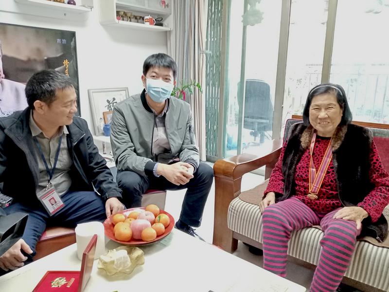隨后,慰問組一行看望慰問了抗美援朝老戰(zhàn)士張蕙蘭。今年84歲的張奶奶14歲參軍入伍,1953年退伍后回到老家安徽,現(xiàn)隨女兒居住在坦洲。坦洲鎮(zhèn)退役軍人服務(wù)中心了解這一情況后,及時(shí)向上級領(lǐng)導(dǎo)匯報(bào),并由鎮(zhèn)領(lǐng)導(dǎo)親自上門慰問。交談中,張奶奶高興的拿出去年國家頒發(fā)的抗美援朝榮譽(yù)勛章及當(dāng)年在部隊(duì)獲得的獎(jiǎng)?wù)?,興奮地和大家講起了當(dāng)年在戰(zhàn)場上的故事;何副鎮(zhèn)長對張奶奶健康的身體和心態(tài)給予高度評價(jià),并對她為國家和人民所作的貢獻(xiàn)表示感謝,祝愿老人新年快樂、健康長壽、生活幸福。
