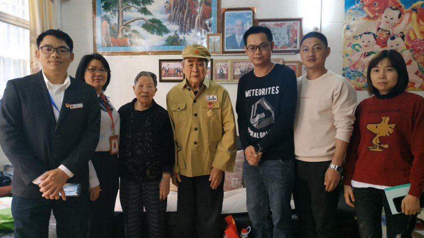 新春佳節(jié)的腳步漸近,歡樂喜慶的氣氛漸濃,為了讓更多人感受到溫暖和祝福港口鎮(zhèn)持續(xù)開展慰問活動走訪退役軍人。 近日,市退役軍人服務中心聯(lián)合鎮(zhèn)退役軍人服務中心開展退役軍人慰問活動,為他們送去黨和政府的溫暖關(guān)懷及節(jié)日問候! 李生(右4),88歲,1951年至1953年期間參加抗美援朝,1957年從朝鮮返回復員,是港口鎮(zhèn)唯一健在的抗美援朝老戰(zhàn)士。 梁細根(右4),63歲,參加過對越自衛(wèi)反擊戰(zhàn),曾在戰(zhàn)時立三等功。 在退役士兵吳干榮(左2)家中,慰問組向他講解危房改造的政策,鼓勵他積極面對生活困難,堅定信心,振奮精神。 梁澤祥(右2)是參戰(zhàn)退役軍人,慰問組轉(zhuǎn)達了市退役軍人事務局、市工商聯(lián)和石岐青協(xié)對他的問候。