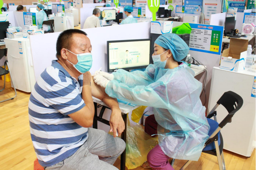 東鳳鎮(zhèn)臨時接種點現(xiàn)日均接種500劑次,在臨時接種點現(xiàn)場,等待接種的重點優(yōu)撫對象佩戴好口罩,在工作人員和退役軍人志愿者的指引下有序進(jìn)入接種點。 志愿者們依次指引重點優(yōu)撫對象們?nèi)サ阶稍兊怯泤^(qū)、量血壓區(qū)、接種區(qū)和留觀區(qū),逐個完成新冠疫苗接種。