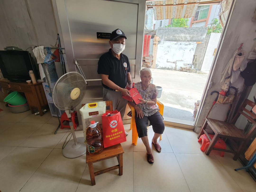 為弘揚(yáng)愛國(guó)主義精神,發(fā)揚(yáng)退役軍人志愿者擁軍優(yōu)屬的光榮傳統(tǒng),表達(dá)對(duì)退役軍人的崇敬和關(guān)愛,古鎮(zhèn)鎮(zhèn)退役軍人服務(wù)中心與鎮(zhèn)退役軍人紅旗志愿服務(wù)隊(duì)在“八一”建軍節(jié)來(lái)臨之際開展節(jié)日慰問活動(dòng),對(duì)15戶困難退役軍人家庭和7戶烈屬進(jìn)行走訪慰問。 7月27日-29日,鎮(zhèn)退役軍人紅旗志愿服務(wù)隊(duì)隊(duì)員利用休息時(shí)間深入各村(居),帶著米、油、飲料等生活用品走進(jìn)困難退役軍人家庭和烈屬家中。 每到一處,退役軍人紅旗志愿者們與退役軍人及其家屬親切交談,詢問他們的身體狀況和生活情況,并詳細(xì)了解他們目前的實(shí)際困難和需求,感謝他們?yōu)閲?guó)家和社會(huì)做出的貢獻(xiàn),囑咐他們要以積極的心態(tài)面對(duì)困難,高溫天氣下注意飲食和防暑,同時(shí)宣傳普及《退役軍人保障法》。
