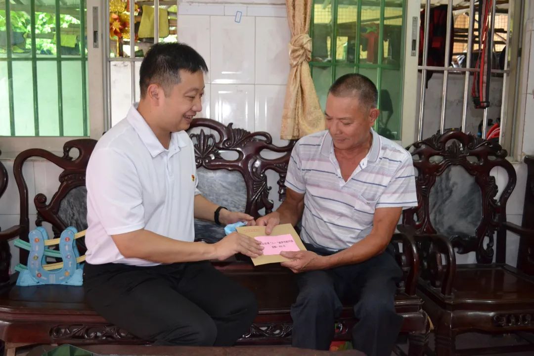 “生活上有什么困難?”“家里近況可好?”當天下午,黃聲群一行來到陳炎根家中,為他送上慰問金,認真傾聽其實際困難和生活需求,感謝根叔為黨和人民所作出的貢獻。