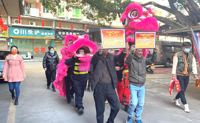 慰問組一行熱熱鬧鬧送喜報(bào)。
