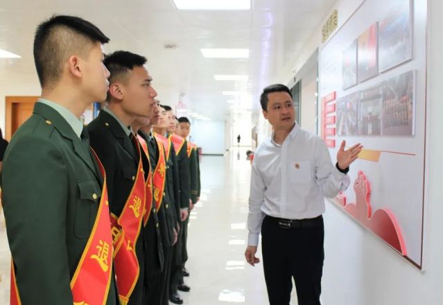 會前,鎮(zhèn)黨委委員冼嘉濤、副鎮(zhèn)長劉燕文對返鄉(xiāng)的退役軍人表示熱烈歡迎,并合影留念。鎮(zhèn)退役軍人服務中心為10名退役軍人辦理返鄉(xiāng)報到,并共同參觀了武裝部與退役軍人服務中心結(jié)合的服務陣地。 座談交流中,退役軍人輪流做了自我介紹,交流分享在部隊的經(jīng)歷和感悟,并表示已做好投入家鄉(xiāng)建設的準備,希望為家鄉(xiāng)多做貢獻。