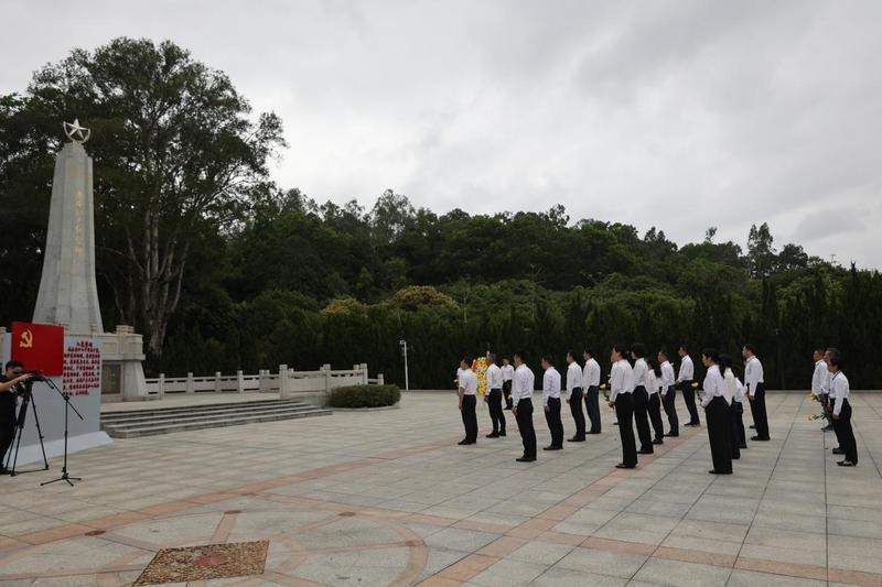 中山市退役軍人事務(wù)局黨組書(shū)記、局長(zhǎng)黃志國(guó)在花圈前駐足凝視,仔細(xì)整理花圈緞帶,并帶領(lǐng)全體人員環(huán)繞紀(jì)念碑一周,沉痛哀悼為革命事業(yè)英勇獻(xiàn)身的英烈們。