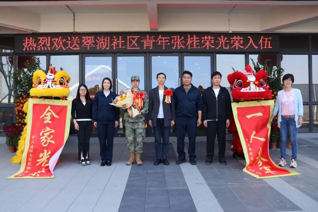 3月12日,中山南朗街道翠湖社區(qū)舉行2026年春季新兵入伍歡送儀式,為即將踏上軍旅征程的新兵張桂榮送行。活動(dòng)現(xiàn)場鑼鼓喧天、醒獅起舞,社區(qū)“兩委”班子成員、工作人員、居民代表及新兵家屬共同見證這一光榮時(shí)刻。