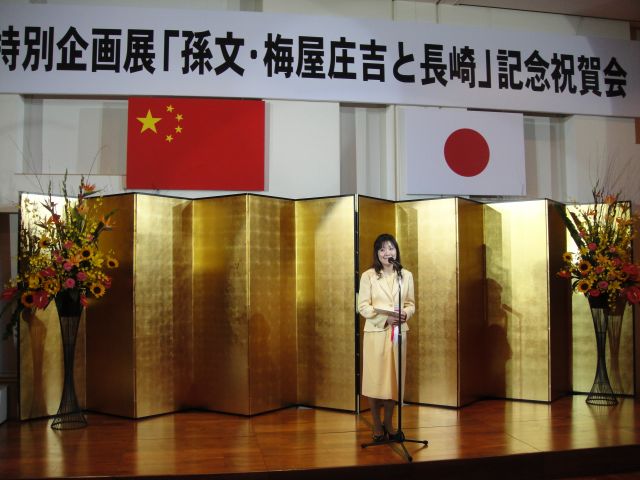 梅屋莊吉曾外孫女小坂文乃女士在“孫中山?梅屋莊吉與長崎”專題展紀(jì)念祝賀會上致詞