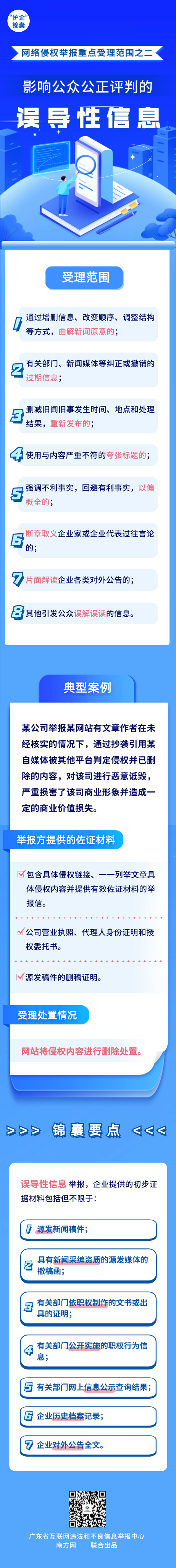 為有效助力企業(yè)維護(hù)自身網(wǎng)絡(luò)合法權(quán)益,廣東省互聯(lián)網(wǎng)違法和不良信息舉報(bào)中心精心準(zhǔn)備了“護(hù)企”錦囊,結(jié)合案例帶大家了解涉企網(wǎng)絡(luò)侵權(quán)信息的重點(diǎn)受理范圍,今天推出重點(diǎn)受理范圍之二——影響公眾公正評(píng)判的誤導(dǎo)性信息。