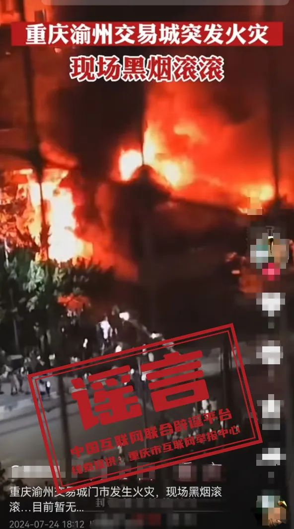 謠 言 重慶渝州交易城突發(fā)火災(zāi)?