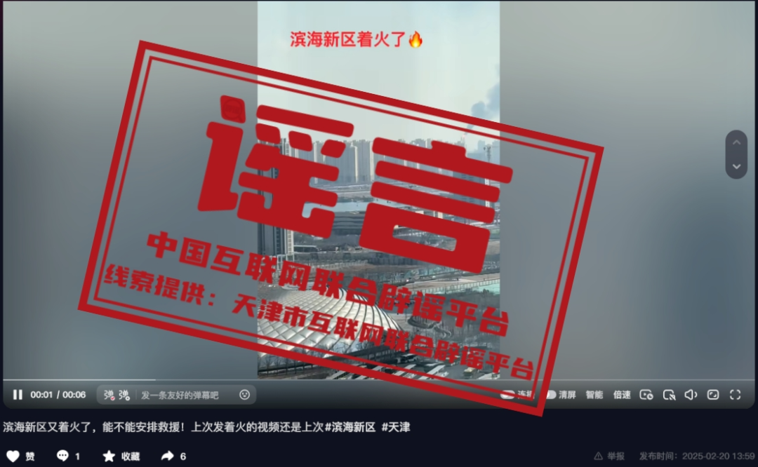 謠 言 天津?yàn)I海新區(qū)著火了?