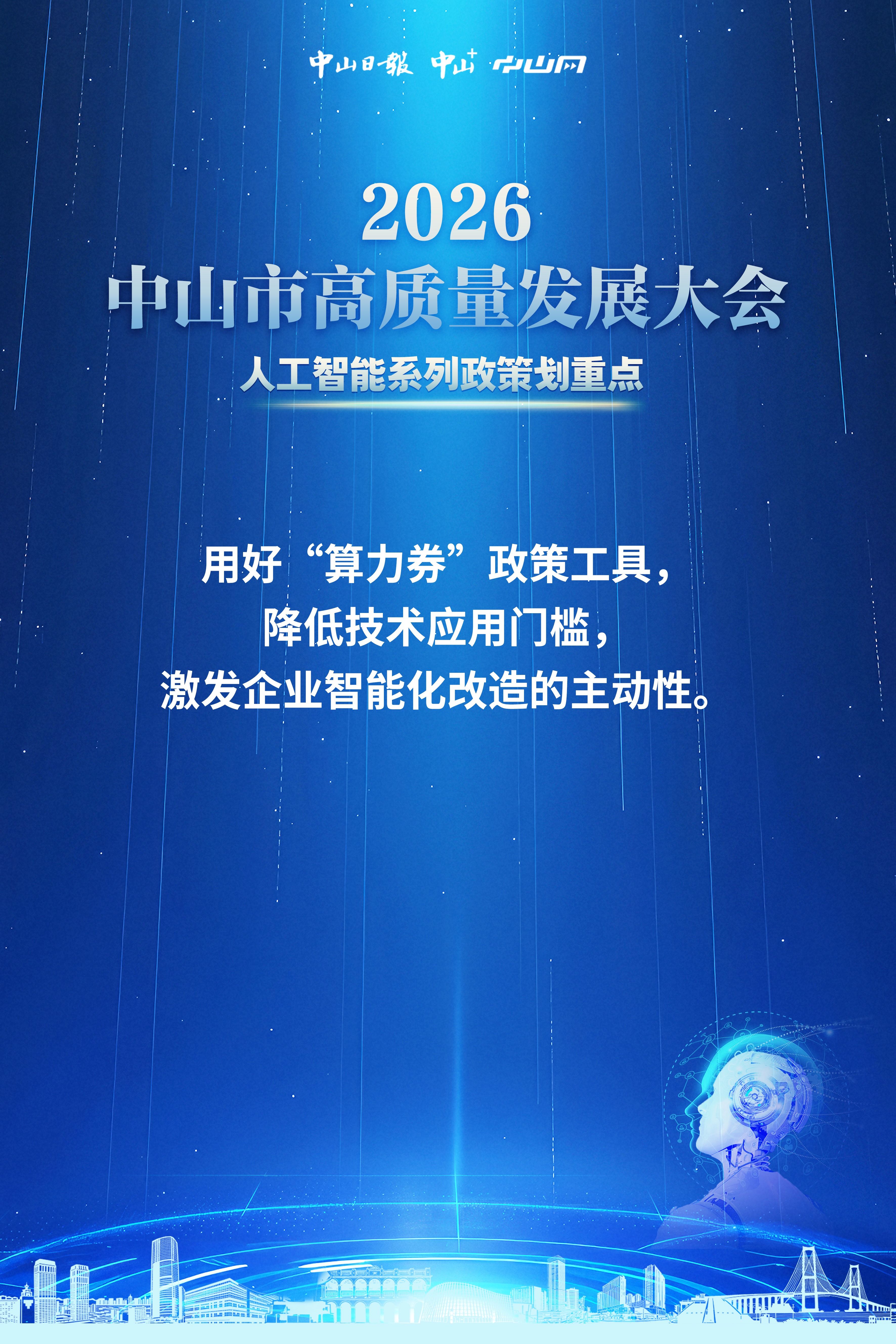 2月24日下午,2026年春節(jié)假期后開工第一天,中山召開全市高質(zhì)量發(fā)展大會,會上發(fā)布了人工智能系列政策,具體有哪些重要內(nèi)容?一組海報帶你劃重點↓↓↓