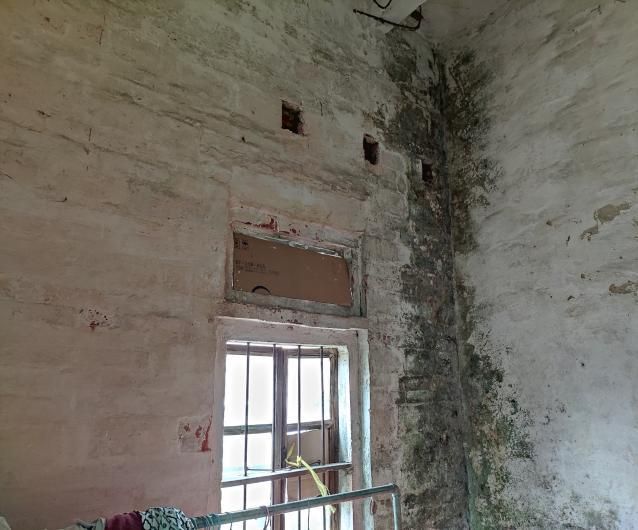 當(dāng)天下午,兩名向日葵社工來到了阿耿家中,阿耿看到社工的到來,仿佛看到了希望的曙光。阿耿家非常的破舊,是一幢年久失修的紅磚房,門窗都是木頭制成的,已經(jīng)破爛不堪。進(jìn)到房子里面,看到阿耿現(xiàn)在是把廚房用具搬到了客廳,本來就小的客廳顯得更加的擁擠。幾句寒暄過后,阿耿帶社工去到出現(xiàn)漏水情況的房間,一進(jìn)到房間,社工就發(fā)現(xiàn)房間墻身已經(jīng)出現(xiàn)了非常嚴(yán)重的發(fā)霉情況,甚至有部分墻壁還長出了青苔,阿耿說:“這已經(jīng)出現(xiàn)很長一段時(shí)間了,前段時(shí)間下雨,墻壁一直滲水,這個(gè)房間原本是我住的房間,因?yàn)闈B水情況越來越嚴(yán)重,就搬到旁邊原來作為廚房的房間居住,而且窗戶的玻璃都已經(jīng)全部掉落了,現(xiàn)在這個(gè)房間已經(jīng)完全不能住人了?!卑⒐⒄f完,就告訴社工還有另一處漏水的地方??吹搅硪惶幝┧牡胤?,社工發(fā)現(xiàn)墻壁因長期滲水導(dǎo)致墻面剝落且墻體分離,到處都是霉斑。阿耿表示,這是漏水情況最嚴(yán)重的房間,房子的其他地方也出現(xiàn)了不同程度的漏水,隨后,阿耿把社工帶到客廳,把其他漏水的地方和情況也向社工反饋。社工看到阿耿現(xiàn)在居住在如此破爛的房子,不禁感到一陣酸楚,同時(shí)也跟阿耿商討著怎樣去解決漏水的問題。