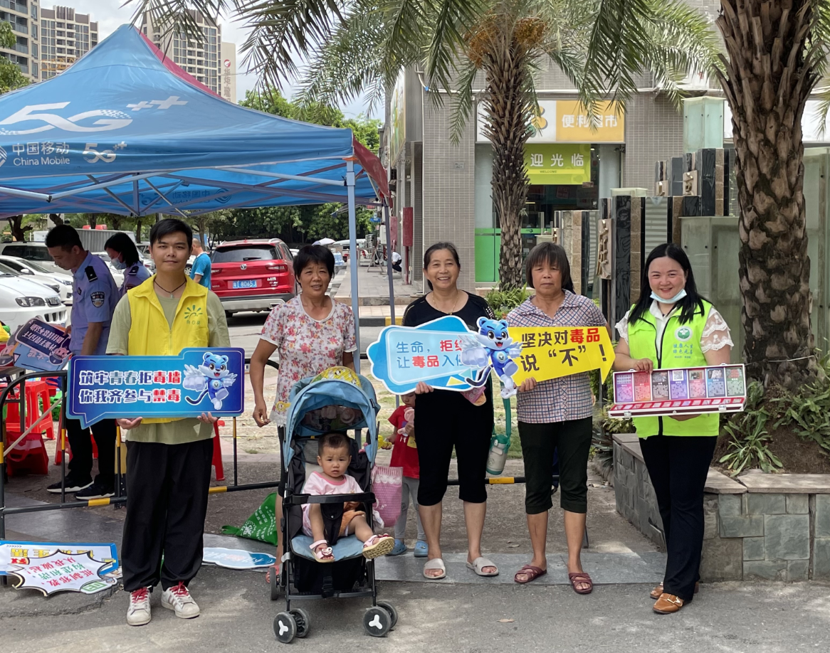 為進(jìn)一步提高阜沙鎮(zhèn)人民群眾抵制毒品的意識(shí)和能力,積極調(diào)動(dòng)廣大群眾參與禁毒的積極性。2021年6月12日下午,阜沙鎮(zhèn)禁毒辦聯(lián)合禁毒社工深入到羅松村阜豐豪庭小區(qū)一帶開展以“健康人生,綠色無(wú)毒”為主題的禁毒宣傳活動(dòng)。