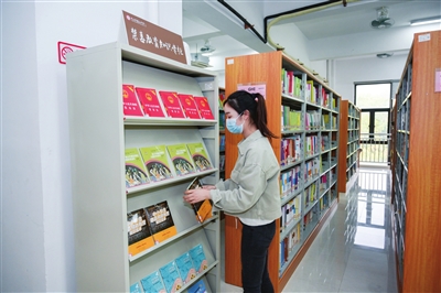 中山市桂山中學(xué)禁毒教育知識專柜前,工作人員正在整理禁毒圖書。 本報記者 易承樂 攝